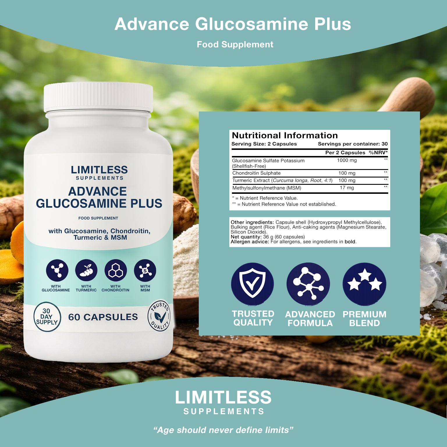 Advance Glucosamine Plus is carefully formulated with selected ingredients designed to complement your daily nutrition without unnecessary fillers or artificial colours.